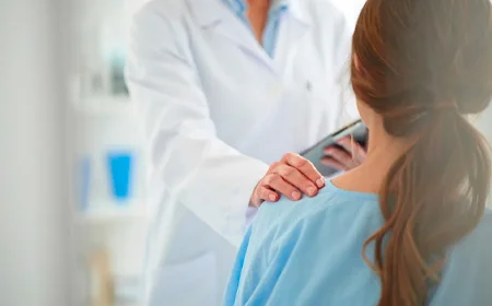 Врач держит за плечо пациентку